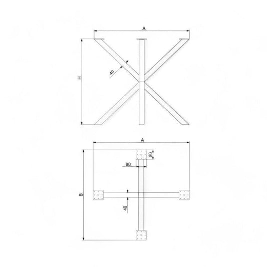 Bordben "X-Form" – Metal til Plankeborde (70x120–180 cm)