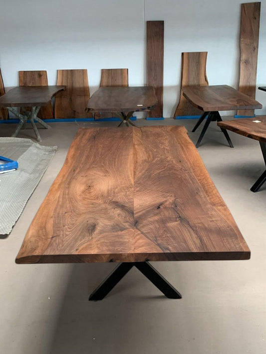 Et plankebord i valnød kombinerer elegance, varme og tidløst dansk design 🌰 Hos TræVerden finder du håndlavede plankeborde i massiv amerikansk og europæisk valnød, fremstillet i Danmark 🇩🇰 med respekt for materialet. Valnød er kendt for sin dybe glød, smukke åremønstre og eksklusive udtryk, som passer perfekt til både moderne og klassiske hjem. Uanset om du ønsker et langt spisebord med naturkant eller en minimalistisk model med rene linjer, kan vi tilpasse designet efter dine ønsker. Se kollektionen herunder og find dit nye valnød plankebord i dag.