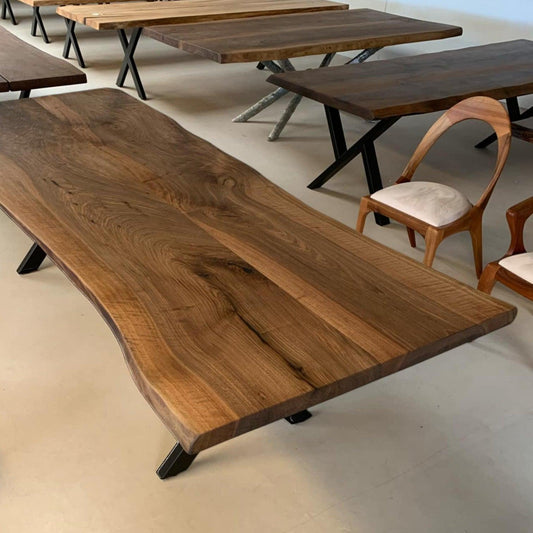Valnød er både hårdt og stabilt, hvilket gør det ideelt til plankeborde. Det er mindre modtageligt for revner og bevægelser end mange lysere træsorter, og det får en smuk patina over tid. Den mørke farve og det levende åremønster giver bordene et eksklusivt og tidløst udtryk, som passer til både moderne, minimalistiske hjem og klassiske indretninger.