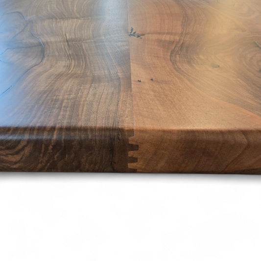 - Massivt træ i høj kvalitet – valnød, eg eller ask, ofte kombineret med epoxy.