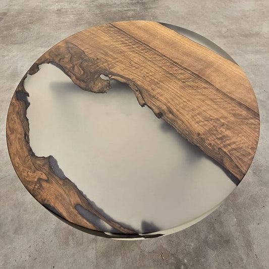 Rundt Sofabord i Valnød med Mat Epoxy – Ø48 cm