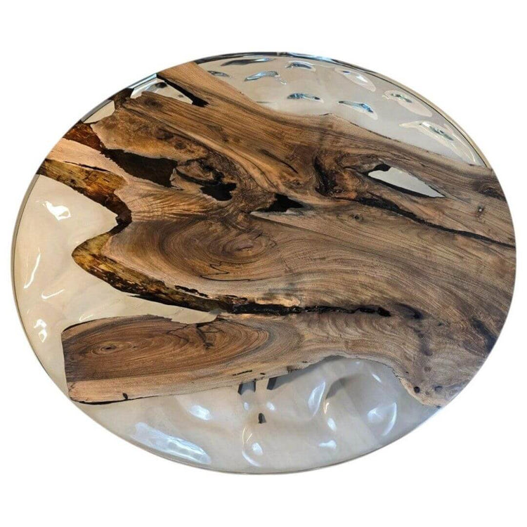 Epoxy plankebord i valnød med gennemsigtig epoxy – Ø145 cm