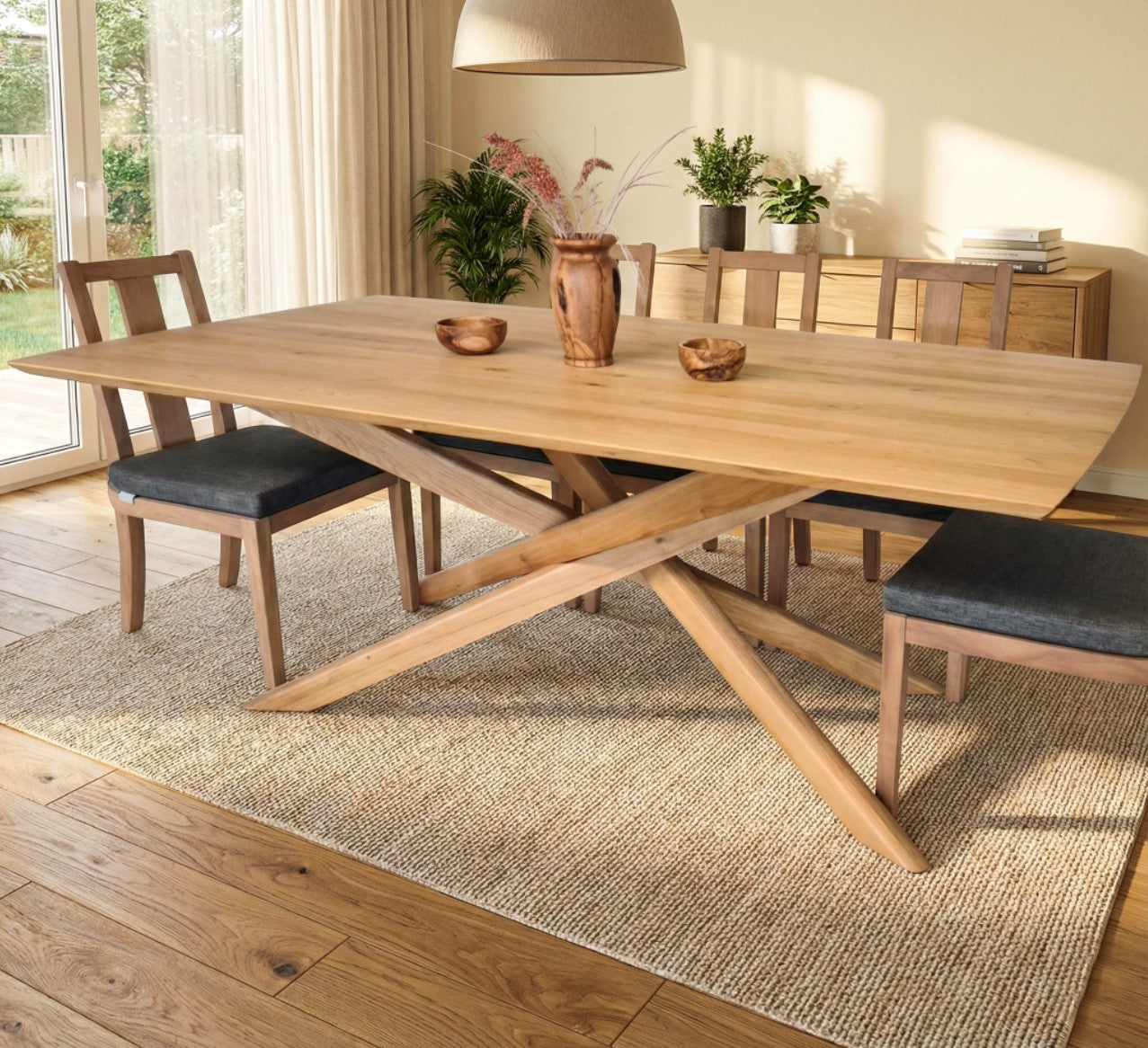Plankebord i Massivt Egetræ – 203×106 cm – Stjerneformede Træbordben