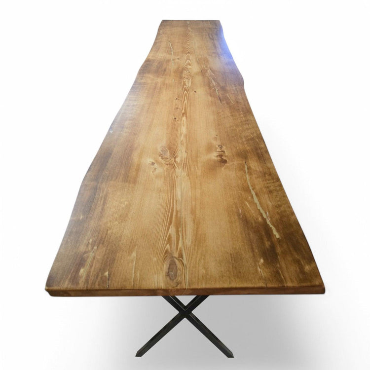 Unikt plankebord i massiv fyr, fremstillet af én hel planke med naturlige former.