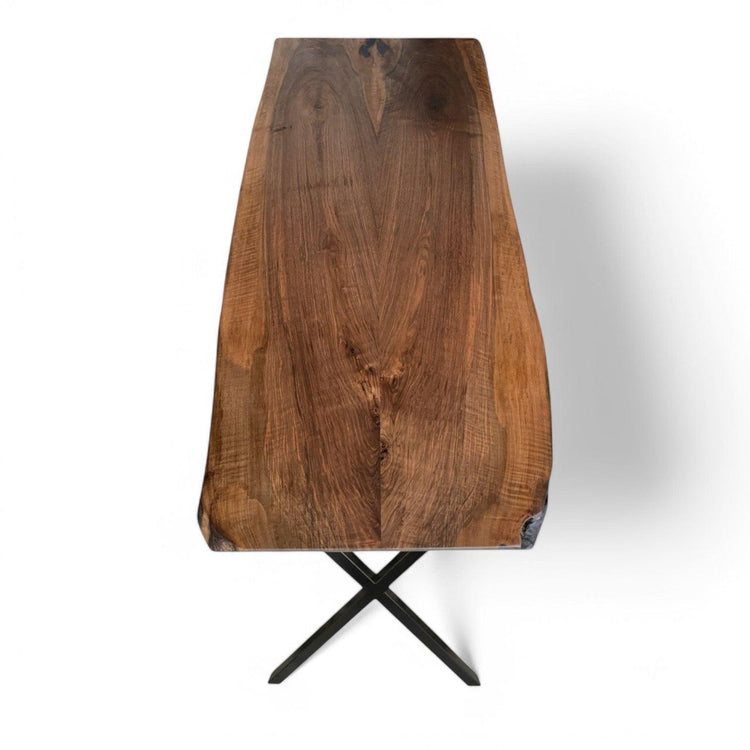 Håndlavet plankebord i massiv valnød med naturlig kant og 2 planker. Behandlet med Rubio Monocoat 2C olie – elegant, slidstærkt og klar til levering fra showroom.