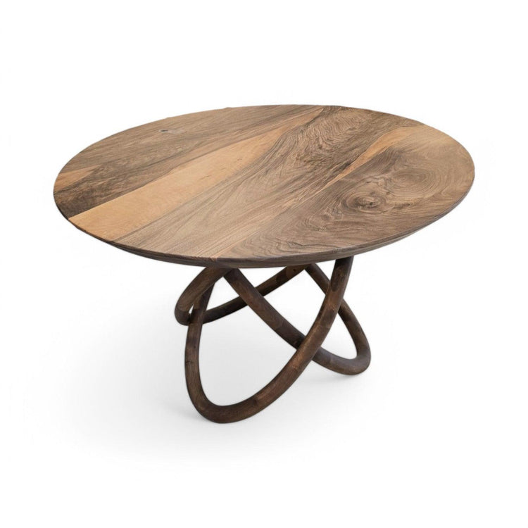 Dette håndlavede runde plankebord i massiv europæisk valnød er det perfekte valg til dig, der ønsker et elegant og naturligt samlingspunkt i hjemmet eller på kontoret. Med en diameter på 120 cm er bordet både praktisk og æstetisk – ideelt til mindre spisestuer, loungemiljøer eller møderum.