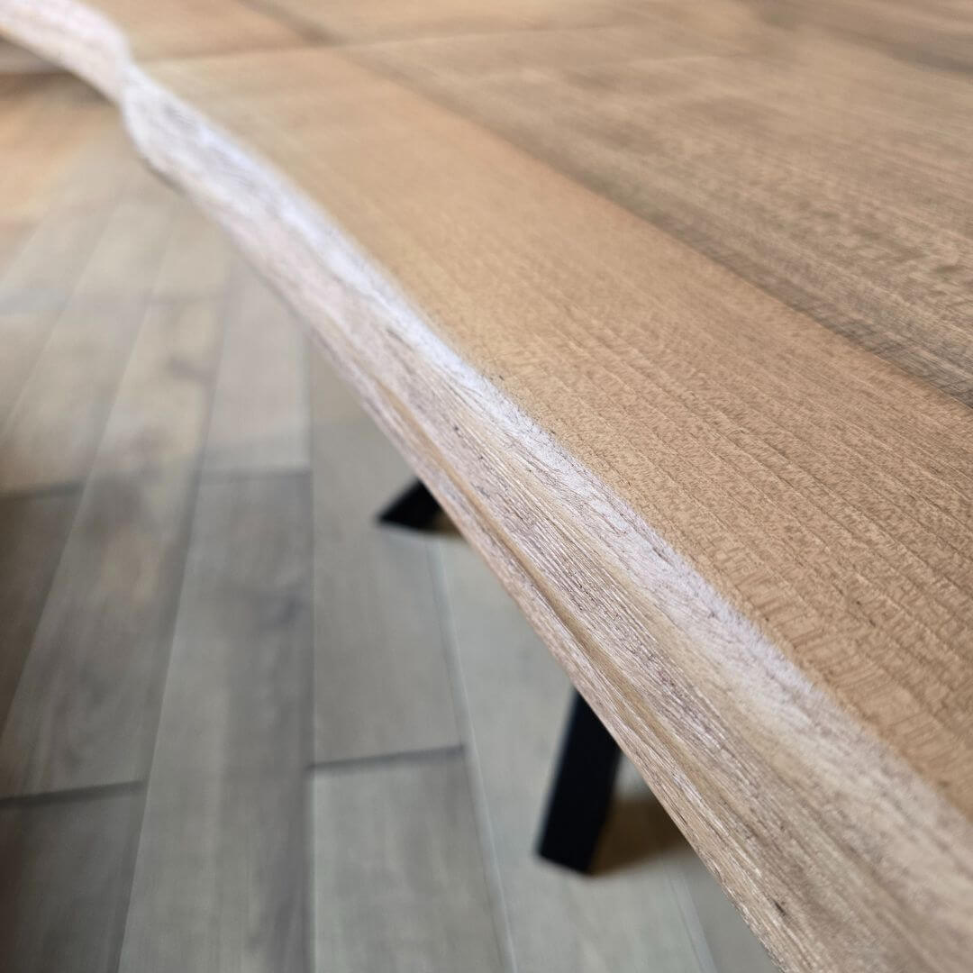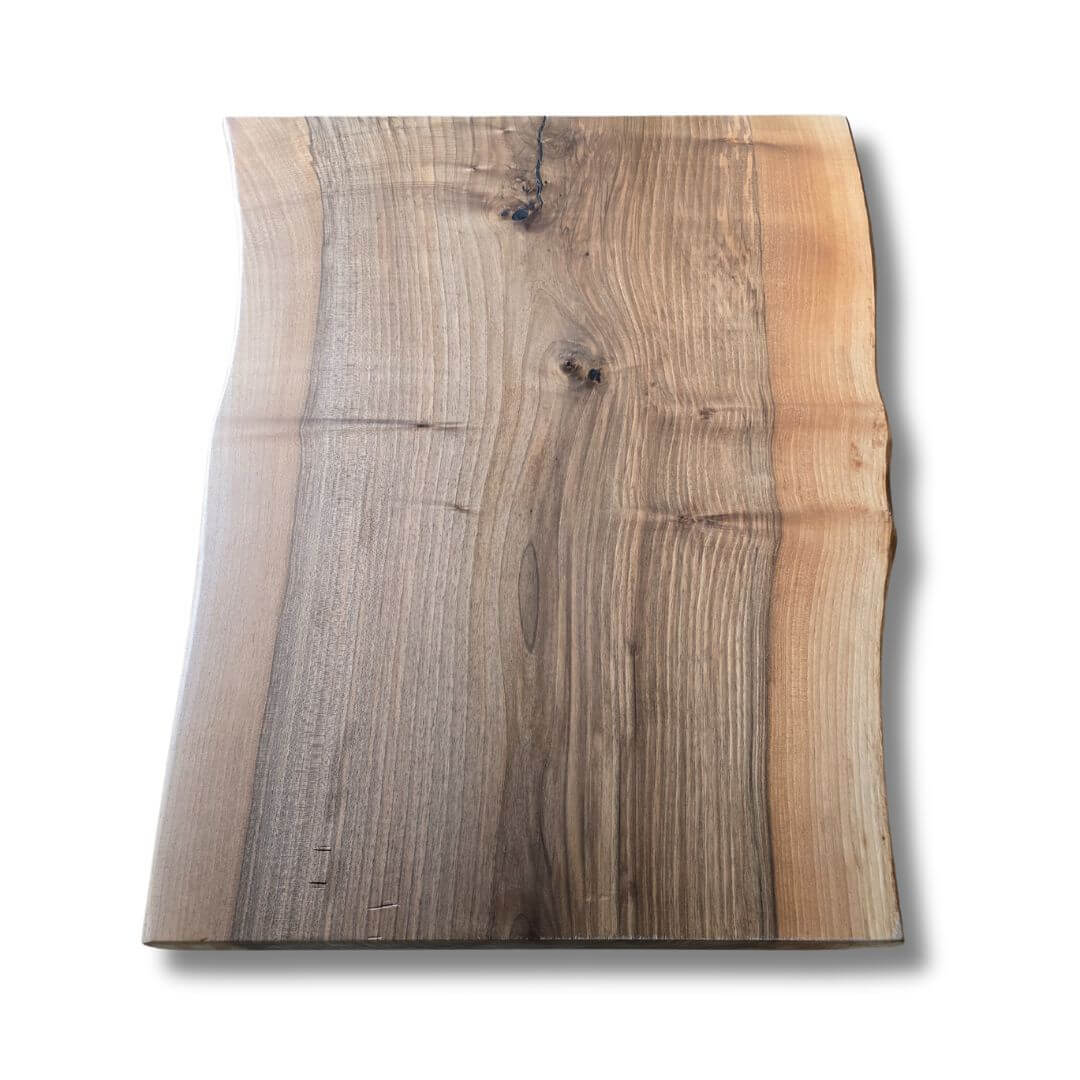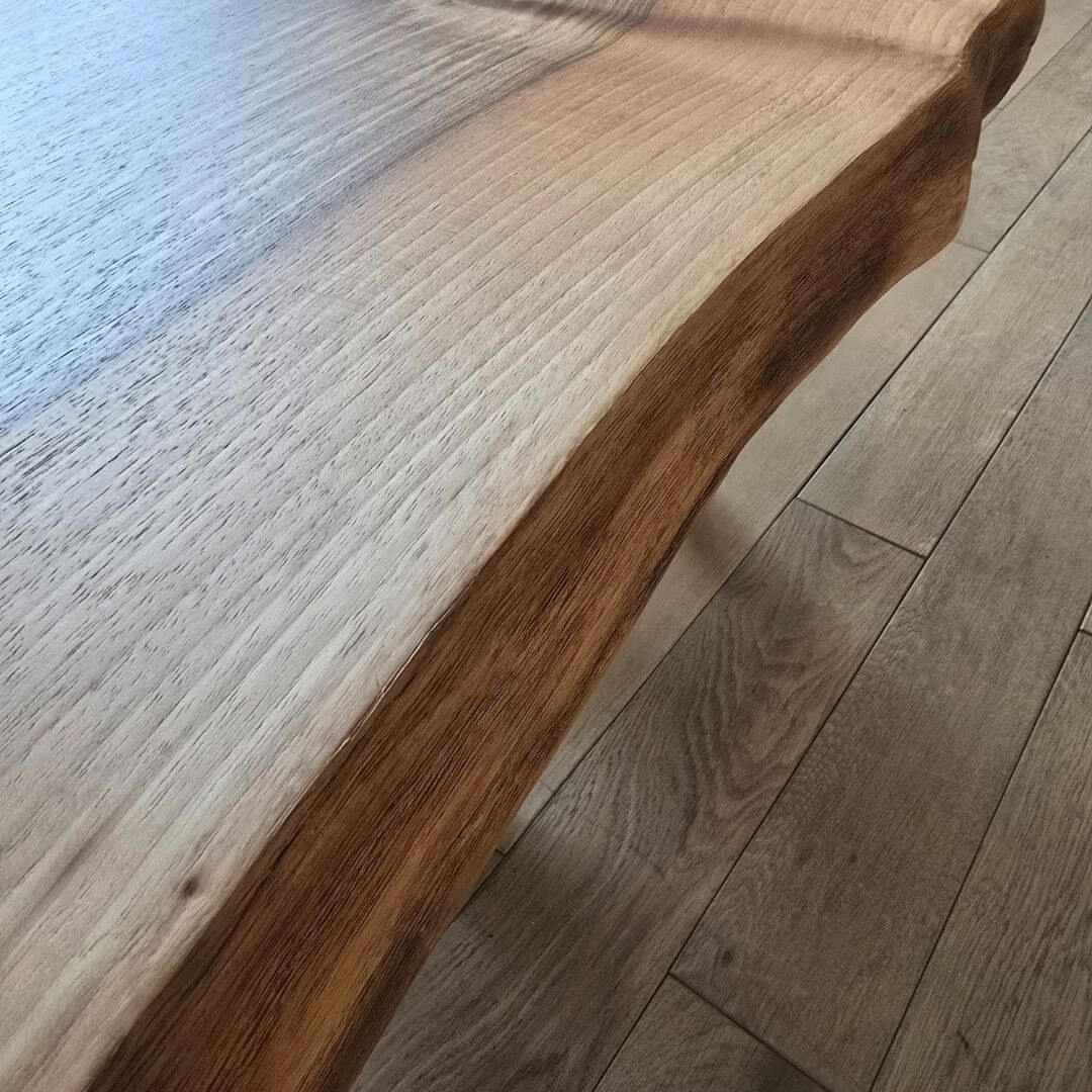 Den levende naturkant bevarer træets oprindelige form og gør hvert bord unikt. Overfladen er slebet og behandlet for at fremhæve valnøddens naturlige glød og dybe åretegninger – et ægte statement-piece i stuen.