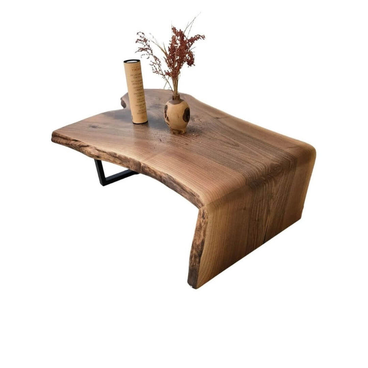 Sofabord i Massiv Valnød – 150 x 65–94 cm (5 cm Tykkelse, Specialform)