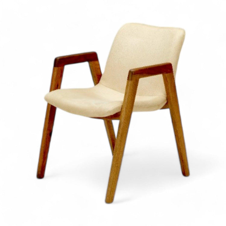 Stolens skrånende ben og ryglæn er ikke blot en fryd for øjet – de er også ergonomisk designet til at støtte kroppen i længere tid. Vejle-stolen passer perfekt ved spisebordet, men kan også bruges som gæstestol, kontorstol eller i loungen.